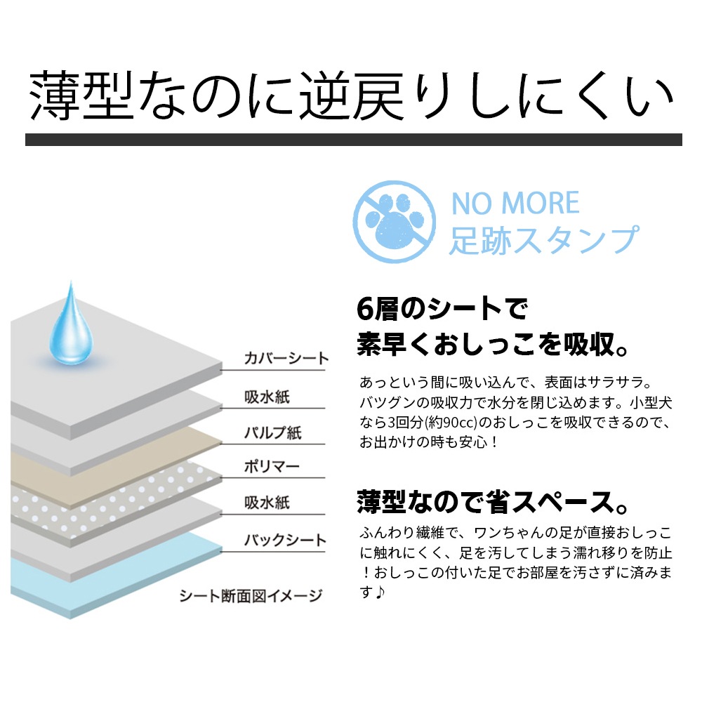 2. おしっこ一回分をしっかり吸収(中型~大型犬1回)。高分子ポリマーがおしっこをしっかり吸収し、逆戻りを防ぎます。
